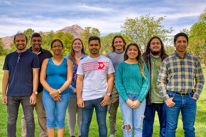 Welcome to the Environmental Chemistry Research Group at NMT. Our research is focused on discovering hidden reaction pathways and mechanisms of complex environmental chemical and photochemical processes. These studies provide essential molecular level insights of surface chemistry and photochemistry of mineral oxides and engineered nanoparticles, during their environmental "aging", to better understand their impact on various ecosystems and health effects. We also conduct research to develop catalytic systems and polymer composites, based on metal oxides and nanoparticles, to address various environmental issues in open water bodies, including increasing amounts of wastewater pollutants. We believe in the importance of developing creativity, critical thinking, scholarship, and independence as successful traits in our chemists. Please explore the website and watch this video to learn more about the ongoing projects in the laboratory and the scientists behind the chemistry. If you have any questions about our research please contact us.